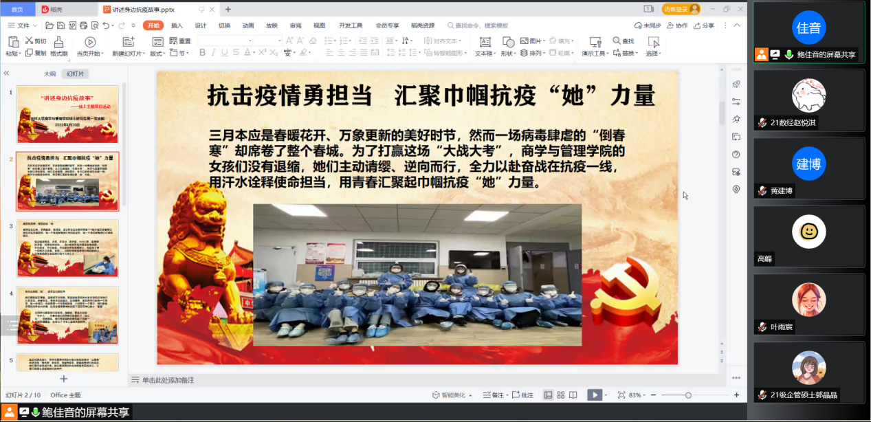 活动的第二部分主要讲述了我们学院甄宓、裴月莹、梁玉芳三位女老师和170名巾帼志愿者的抗疫情故事:为了打赢这场“大战大考”,在线老虎机